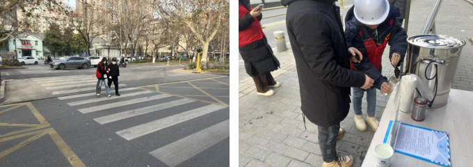 志愿服务暖人心,细节之处见真情。针对气温下降后工地周边道路通行风险增加的实际情况,西安水务(集团)工程建设管理有限公司与中建五局三公司金花隧道积水点整治项目组建专项志愿者服务队,在工地周边通行路段设立“助老护行岗”。志愿者们身着统一标识服装,主动为过往老年人提供搀扶、引导等服务,耐心叮嘱通行注意事项,全程守护老年群体安全过马路,用贴心帮扶驱散冬日寒意。同时,活动现场设置便民服务点,志愿者们提前备好保温热水,为前来咨询的市民、过往路人免费提供热水补给,让寒冷天气里的出行多了一份温暖保障,赢得群众广泛好评。