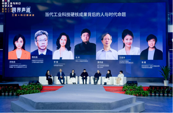 “跨界声波”圆桌派环节邀请邓桂垚、杨拴昌、李倩、马平、黄鸣奋、王昱华、袁媛、杨枫、师博、郑军、星河、成全等工业、影视、人工智能、科幻等领域专家分别就“当代工业科技硬核成果背后的人与时代命题”和“如何讲好中国工业文化的未来故事”进行探讨。