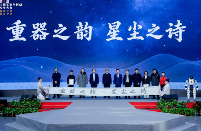 工业和信息化部工业文化发展中心副主任孙星在致辞中指出:“工业不仅是一系列工厂、技术与产品的集合,更是一部波澜壮阔的史诗,一种深沉厚重的文化。”他强调,本届大赛是工业文化创造性转化与创新性发展的全新路径,中国工业的磅礴现实为科幻创作提供坚实底气,科幻的前瞻想象则为工业文化注入未来张力。国家国防科技工业局新闻宣传中心副主任熊攀表示,国防科技工业所铸就的军工文化,是“硬核科技”与“软性文化”的高维融合,构筑起中国工业叙事中最坚韧、最澎湃的篇章。本届大赛聚焦“大国重器”,正是对这份跨越时空的奉献精神与未来畅想的深情书写。长垣市委书记范文卿在致辞中强调,将依托“中国起重机械之都”“中国医疗耗材之都”等产业优势,以“重器之韵·星尘之诗”为主题,推动工业与科幻文学深度融合,全力打造工业文化新地标,激发创新活力,彰显中国制造文化底蕴。