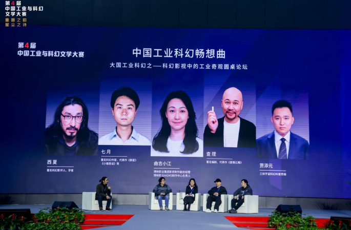 下午主题活动,“中国工业科幻畅想曲”会议中,张冉、江波、凌晨、陈梓钧、刘维佳、查杉、西夏、七月、曲吉小江、查理、贾添元、李永治等科幻作家及行业专家分别围绕“科幻中的工程师精神”与“科幻影视中的工业奇观”展开深度思辨。