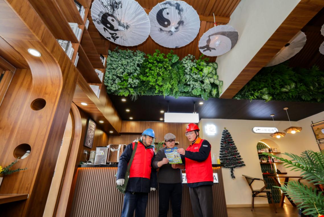 然而,创业之路从来都不是一帆风顺的。对于一个新店来说,稳定可靠的电力供应,是保障正常运营的关键命脉。从咖啡机的欢快运转到灯光的柔和照明,从冷藏设备的稳定运行到收银系统的顺畅使用,每一个环节都离不开电力的支撑。冉军旗深知电力的重要性,但在开业初期,面对错综复杂的用电设备和线路布局,他一时有些茫然无措。就在冉军旗愁眉不展时,国网焦作供电公司陈家沟中心供电所及时伸出援手,他们迅速组织人员上门服务,对店内外的用电线路和设备进行细致检查,提供科学合理的用电指导,确保了小店的顺利开业。平时,冉军旗遇到什么用电问题,只需打个电话或发个微信就能够第一时间得到妥善解决。焦裕禄共产党员服务队还会不定期上门,积极宣传安全用电、节约用电等知识。