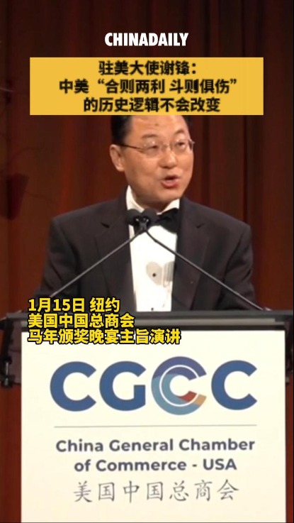当地时间1月15日,中国驻美国大使谢锋应邀出席在纽约举办的美国中国总商会马年颁奖晚宴并发表主旨演讲。2026-01-17 07:14