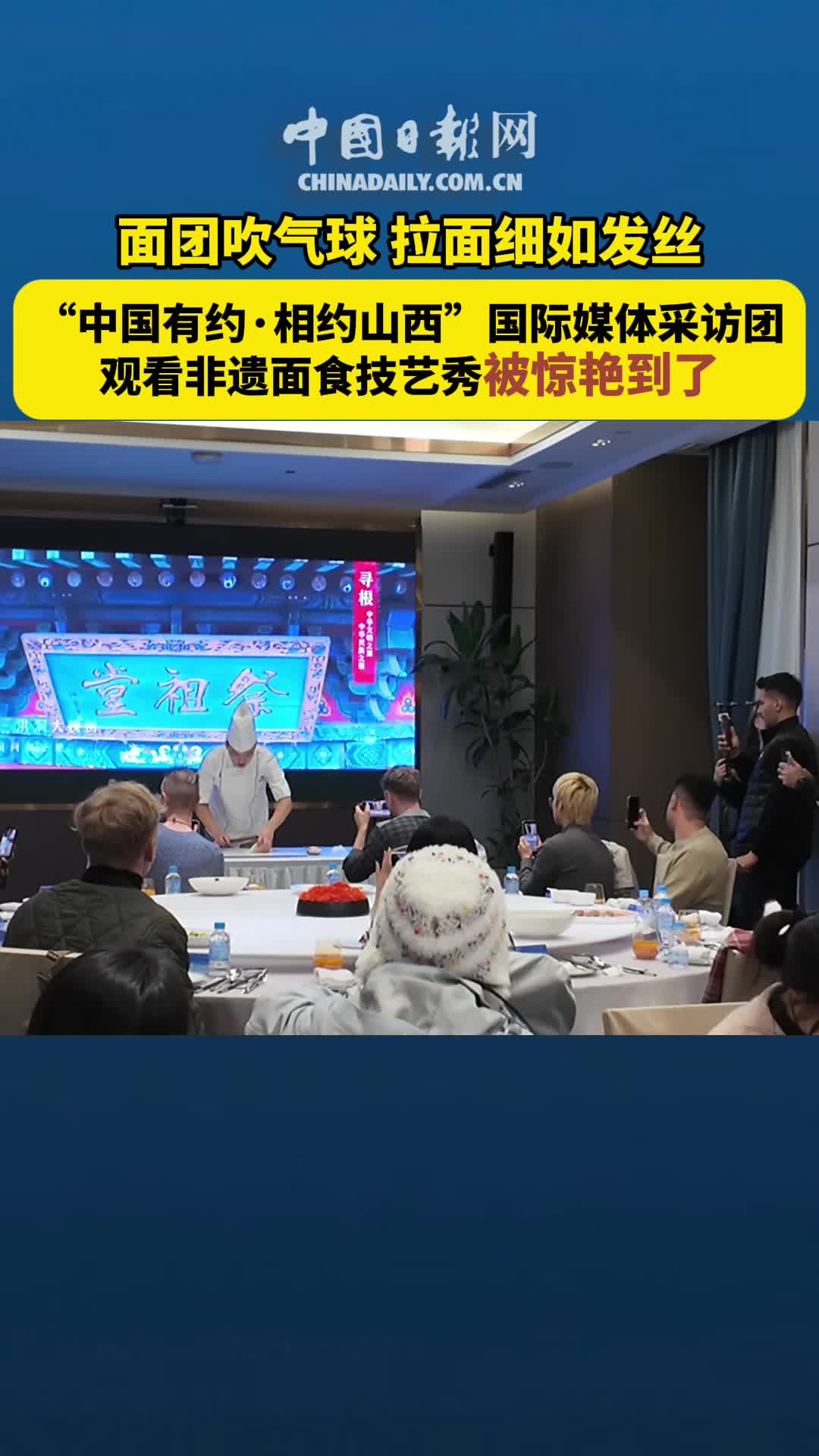 11月10日晚,“中国有约·相约山西”2025年国际媒体采访团观看传统面食制作表演。2025-11-11 16:29