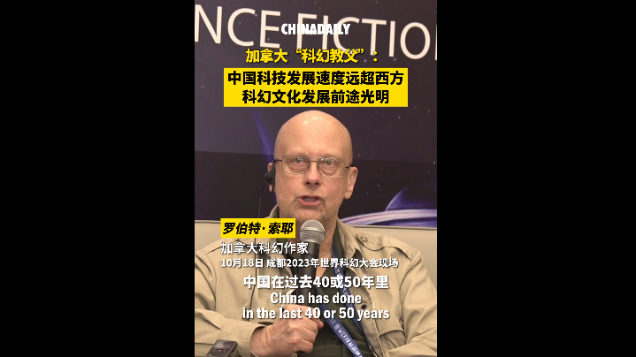 在2023成都世界科幻大会上,加拿大科幻作家罗伯特·索耶与中国“幻迷”畅谈科幻文化。2023-10-20 11:35