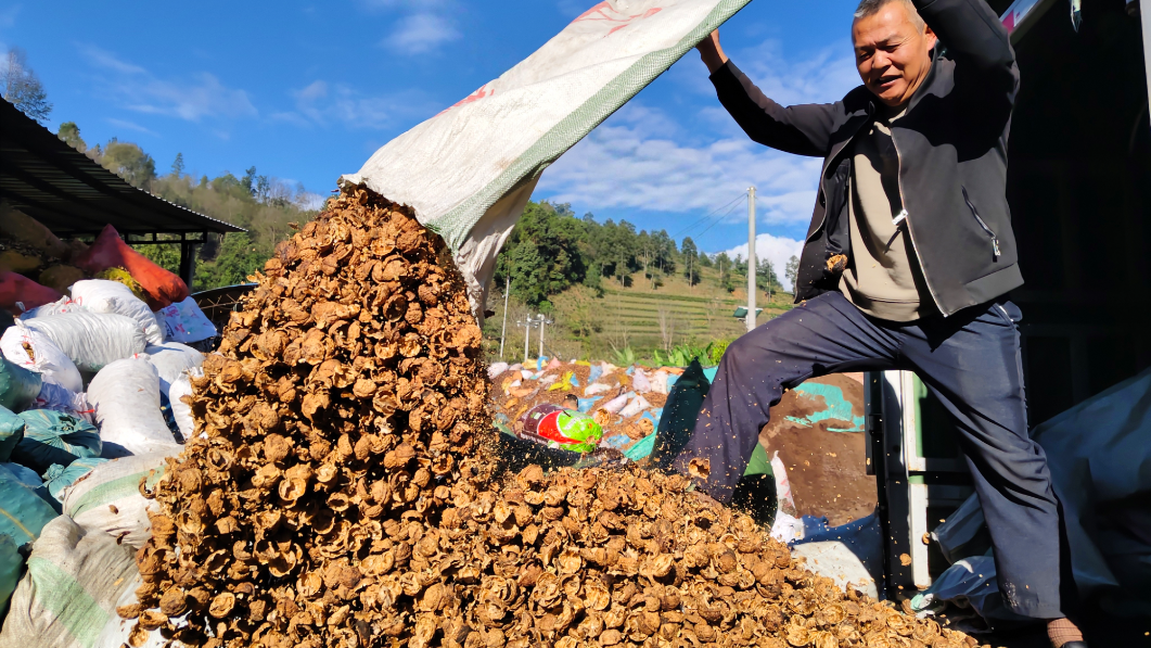 在“中国核桃之乡”临沧凤庆,全县核桃种植面积达172万亩,2025年干果年产量预计达18万吨,凤庆县及周边地区随之产生的核桃壳预计达到45.3万吨。2025-11-01 14:50
